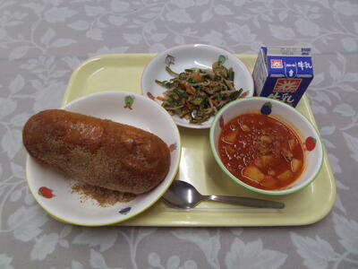一覧へ 今日の給食 日時 2025年12月03日(水) 公開対象 パブリック 詳細 今日の献立:キャラメル揚げパン、牛乳、チリコンカン、茎わかめとじゃこのサラダ サラダの中には「ちりめんじゃこ」が入っています。ちりめんじゃこは、いわしの稚魚のことです。ちりめんじゃこは、体を作るもとになる「たんぱく質」や骨や歯をじょうぶに保つのに欠かせない「カルシウム」などの栄養が含まれています。 作成者 鬼高小学校管理者 作成日時 2025-12-01 19:00:12 更新者 鬼高小学校管理者 更新日時 2025-12-03 13:36:21