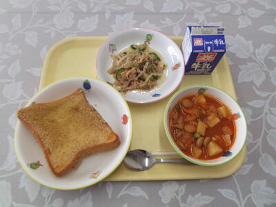 一覧へ 今日の給食 日時 2025年12月15日(月) 公開対象 パブリック 詳細 今日の献立:セサミトースト、牛乳、じゃが芋とウインナーのチリソースに、ツナと野菜のあえ物 今日の給食では、玉ねぎ、にんじん、もやし、きゅうりなど9種類の野菜が使われています。寒くなると、風邪などを引きやすくなります、風邪の予防には、風邪に負けない体の力(抵抗力)をつけることが大切です。野菜にはビタミンが含まれていて、抵抗力を高めてくれる働きがあります。しっかり食べて風邪に負けない体を作りましょう。 作成者 鬼高小学校管理者 作成日時 2025-12-15 12:26:12