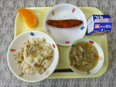 一覧へ 今日の給食 日時 2025年03月14日(金) 公開対象 パブリック 詳細 まいたけごはん、牛乳、さけフライ、ちゃんこ汁、オレンジ みなさんは、日ごろから「ゆっくりよくかんで」食べていますか。食べ物をよくかむことは食べすぎを防ぎ、消化・吸収を助けむし歯や歯周病の予防に役立つなど、体によい働きがあります。今日も、ゆっくりよくかんで食べましょう。 作成者 鬼高小学校管理者 作成日時 2025-03-12 12:55:22 更新者 鬼高小学校管理者 更新日時 2025-03-14 18:07:14