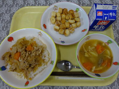 一覧へ 今日の給食 日時 2024年06月24日(月) 公開対象 パブリック 詳細 今日の献立:豚丼、牛乳、みそ汁、おふのラスク 豚丼:豚肉には、ビタミンB₁が多く含まれています。ビタミンB₁は、糖質をエネルギーに変えるときに働くビタミンで、ご飯を主食としている日本人に欠かせません。ビタミンB₁によりエネルギーが効率よくできると、脳を働かせたり、疲労の回復を助けたりすると言われています。 作成者 鬼高小学校管理者 作成日時 2024-06-24 12:26:18 更新者 鬼高小学校管理者 更新日時 2024-06-24 12:33:58