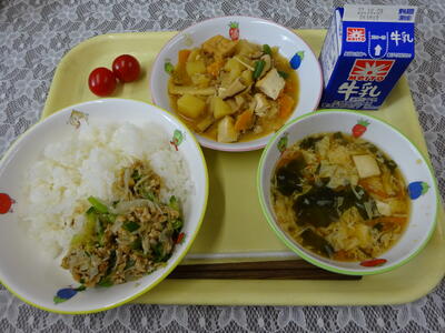 一覧へ 今日の給食 日時 2023年10月02日(月) 公開対象 パブリック 詳細 生揚げは豆腐を切り、油で揚げたものです。大豆からできているので、たんぱく質も豊富に含まれています。 肉や魚、卵などの動物性たんぱく質は普段の食事でも摂りやすいのですが、植物性たんぱく質は摂取しにくくなっています。給食では大豆製品を使って、植物性たんぱく質も摂れるように工夫しています。 【メニュー】 ごはん 生揚げの肉みそ煮 かきたま汁 納豆和え ミニトマト 牛乳 作成者 鬼高小学校管理者 作成日時 2023-10-02 16:45:48 更新者 鬼高小学校管理者 更新日時 2023-10-02 18:08:13