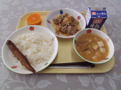 一覧へ 今日の給食 日時 2025年12月12日(金) 公開対象 パブリック 詳細 今日の献立:ごはん・牛乳・ししゃものカレーあげ・肉じゃが・豆腐のみそ汁・花みかん 今が旬の果物「みかん」。みかんには、ビタミンCが多く含まれているのは、もちろんですが、それ以外にも体の中でビタミンになるβーカロテンやカリウムなどの栄養が含まれています。みかんの原産地には鹿児島県で明治時代からさかんに生産されるようになりました。 作成者 鬼高小学校管理者 作成日時 2025-12-08 14:06:49 更新者 鬼高小学校管理者 更新日時 2025-12-12 12:01:25