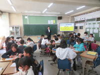 5、6年生を対象に、少年センターの方を講師としてお招きし、インターネットトラブル防止の授業を行っていただきました。実際に起きたインターネット上のトラブルの例を出して、「インターネット上でのトラブルに巻き込まれないための方法」や、「SNS、アプリ等の正しい使い方」についてお話していただきました。