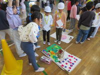 12日(金)は1年生が幼稚園や保育園の園児を招待して「あきのわくわくらんど」を行いました。1年生はこの日に向けて、公園や校外学習で落ち葉や木の実を集め、園児が喜ぶようなプレゼントや体験コーナーを用意しました。