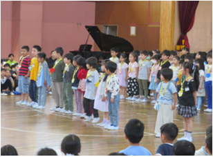 1年生はお礼として「ドキドキドン!1年生」を元気に歌い、全校から大きな拍手が湧き上がりました。