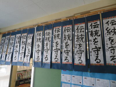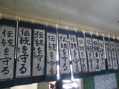 今年度の校内書初め展も感染症対策のため、保護者の参観を見合わせていただきました。