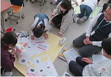 各クラスが「インターナショナル」、「ジャパニーズ」の2チームに分かれ、理想のハンバーガーショップを考案します。チームごとにメニューを考えたり、店舗のコンセプトを考えたり、どのようなスタッフを採用するか考えたりしました。また、考えた内容を学年の前で発表し、アデコの方々をお客さんに見立ててロールプレイも行いました。