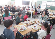 授業後、アデコの方々から「将来、新しい仕事ができたり、これまでの仕事がなくなったりするけれども人とのつながりは大切にしてほしい」と話がありました。子供たちは給食を一緒に食べながら、交流を深めることもでき、多くのことを学べたようでした。