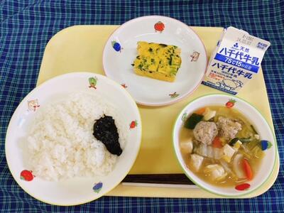ツナごはん、黄金焼き、白玉雑煮、ぽんかん、牛乳