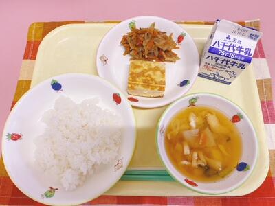 ごはん、擬製豆腐、五目きんぴら、千葉の恵みの味噌汁、牛乳
