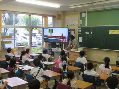 6月10日 市川市道路交通部の方に来ていただき、1年生は道路の渡り方、3年生は自転車の乗り方を学習しました。