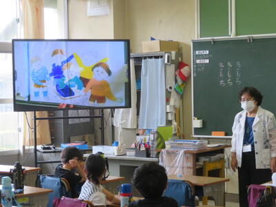 生活場面をもとにしたお話の読み聞かせを通して、登場人物の気持ちや、自分ならどうするか考えました。