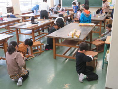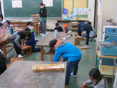3年生は、図画工作科で初めてのこぎりを使いました。