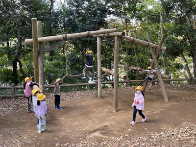 はじめはアスレチックやワンパクボール島でめいいっぱい体を動かして遊びました。