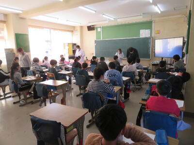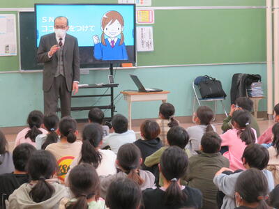12月21日 5年生は千葉県警サイバー犯罪対策課の方に来ていただき、スマートフォンやSNSなどインターネットの使い方やトラブルについてお話を伺いました。