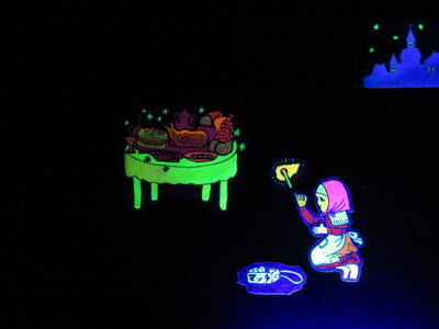 子供たちは、ブラックライトで映し出される幻想的な世界に引き込まれていました。