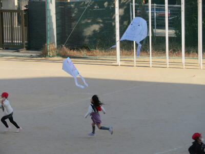 1年生は生活科「ふゆとあそぼう」の学習で、たこあげをしていました。