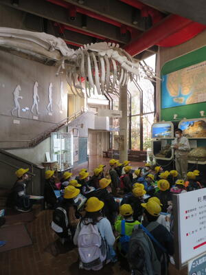 考古博物館では、大きなコククジラの化石や縄文時代の石器や土器などを見学してきました。