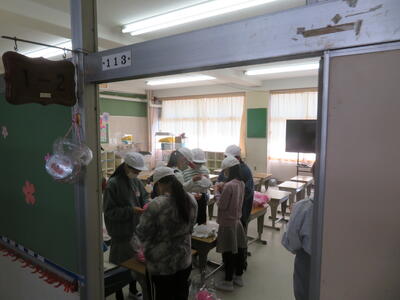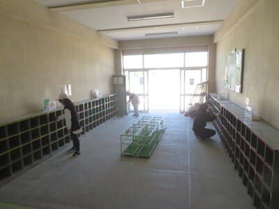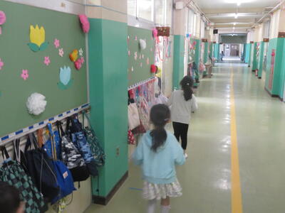 また、入学式に向けて、6年生が校内の掃除や1年生の教室の装飾を行いました。