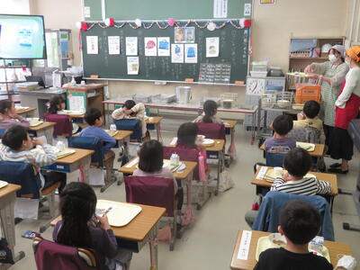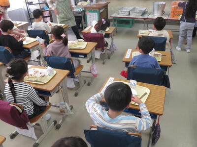 4月17日(月)1年生は初めての給食でした。