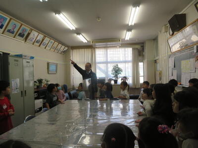 職員室・放送室・校長室などを回り、興味深く見学していました。