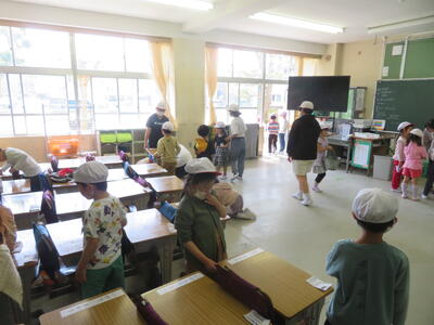 雑巾をしぼるのも、床を拭くのも、机を運ぶのも初めてで、6年生に教えてもらいながら、楽しく取り組んでいました。