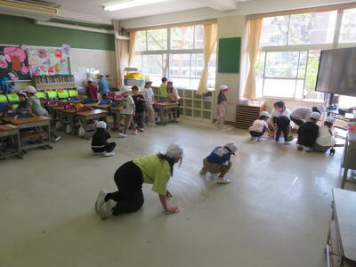 まずは、自己紹介をし、そのあと、じゃんけん列車などのゲームをして楽しく活動していました。