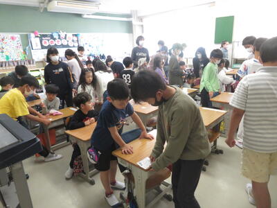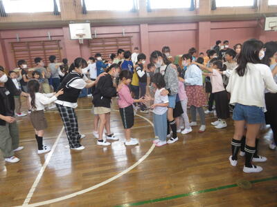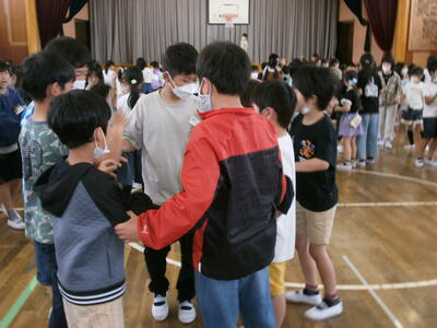 この日は2年生と4年生が今年度初めての活動として、一緒にゲームなどをして交流していました。