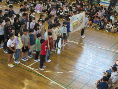 コロナ禍になって以来、初めて全校児童が体育館に集まり実施しました。