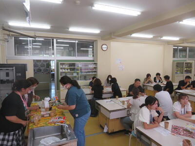7月20日(木)の午後、地域学校協働活動推進員さん等地域の方にカフェを開いていただきました。