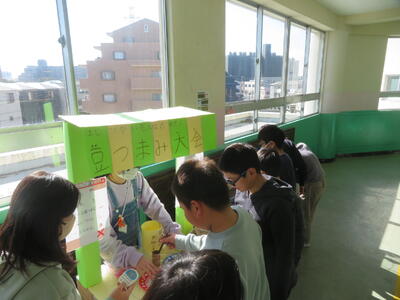食育の充実を図るため、栄養教諭と給食委員児童による「豆つまみ大会」を行いました。