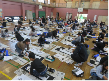 1月8日・9日に3~6年生は体育館で書初めを行いました。12月にも練習をしましたが、その時よりもどの子も大きく、美しく書けるようになっていました。(1・2年生は各教室でペン書きでの書初めを行っています)