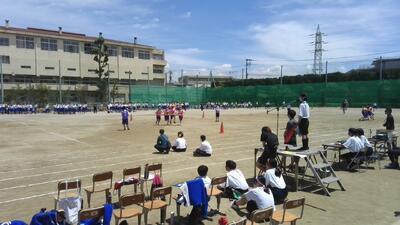 暑い中、総合体育大会が行われています。他の部活の生徒も応援に駆け付け、「チーム南行」で応援している姿が見られました。