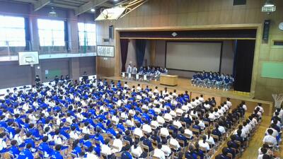 生徒指導主事からは、交通安全、安全な行動、地域行事への参加についてなどの注意点の話がありました。全員がそろって9月2日に会えるように実りある夏休みにしてほしいと思います。