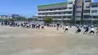 ゴールデンウィークが明け、本格的に体育祭練習が始まっています。中学校での初めての体育祭となる1年生の「みんなでポン」の練習が行われていました。クラスごとに声援がとび、最後まで一生懸命に競技している様子が見られました。