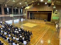 今日は、2年生の学年集会が行われていました。クラスの代表から各クラスの良かったところと改善点が発表されていました。