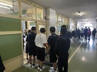 本日、証明書用の写真撮影が行われています。廊下に静かに整列し、一人ひとりの写真撮影が行われていました。みんな集まっての集合写真よりも緊張感が感じられます。