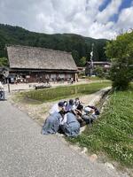世界遺産、白川郷での班別行動です。フォトコンテストに向けて、各班、趣向を凝らして写真を撮っていました。