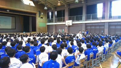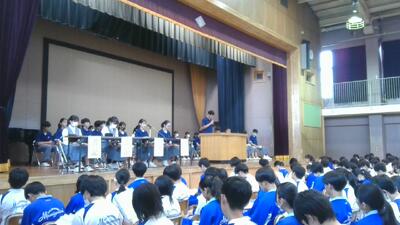 生徒指導主事からは、交通安全、安全な行動、地域行事への参加についてなどの注意点の話がありました。全員がそろって9月2日に会えるように実りある夏休みにしてほしいと思います。