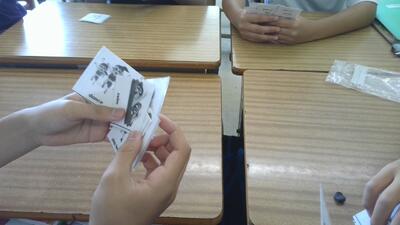 1年生の英語です。カードを使ってコミュニケーションをとっていました。盛り上がってます。