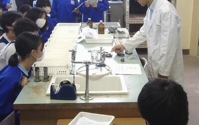 2年生理科の授業です。鉄の燃焼について実験の説明を聞いています。真剣ですね。