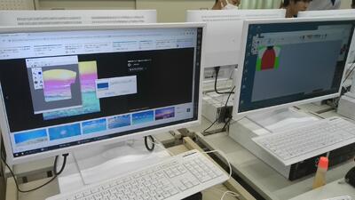 3年生技術です。パソコンを使ってストラップのデザイン考えていました。