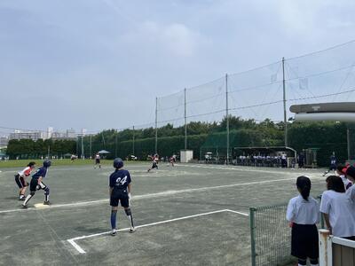 暑い中、総合体育大会が行われています。他の部活の生徒も応援に駆け付け、「チーム南行」で応援している姿が見られました。
