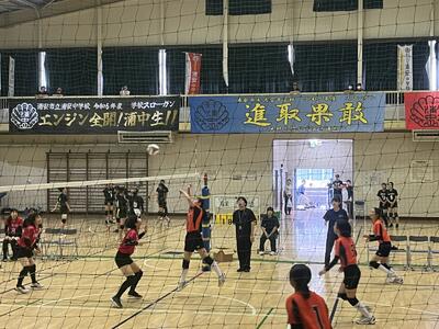 女子バレー部です。みんなで声をかけ、みんなでボールをつなぎました。