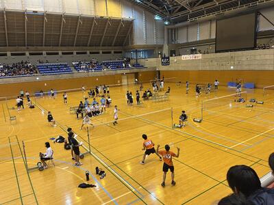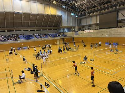 バドミントン部です。シャトルを打つ音、シャトルやラケットが空気を切る音、選手の声が印象的な熱戦が繰り広げられました。