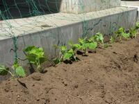 温かい日差しの中、3年生の生徒たちの協力で、ゴーヤの苗を植えました。ネットに緑の葉が生い茂り、夏には立派な実がなることを願っています。