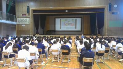 2年生の鎌倉への校外学習に向けて、集会が行われました。各係のリーダーからの話や先生方からの話がありました。