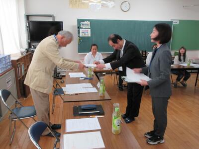 大型提示装置に映された次の作業についての説明も真剣に聞いていました。