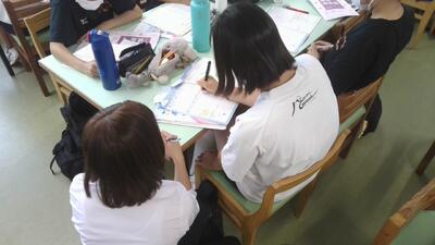 夏休み中に校内塾「まなびくらぶ」を実施しています。多くの生徒が学習に取り組んでいました。