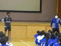2年生では、5月31日・6月1日・3日の予定で、一流のトップアスリートを招いてのJFA こころのプロジェクト「夢の教室」を行いました。様々な競技の現役選手/OB/OG などを「夢先生」として学校へ派遣し、「夢を持つことや、その夢に向かって努力することの大切さ」「仲間と協力することの大切さ」などを学習しました。1日目はサッカーの長谷川太郎さん、2日目は太極拳の市来崎大祐さん、3日目はボクシングの前田宏行さんの3名の「夢先生」から伝えていただきました。